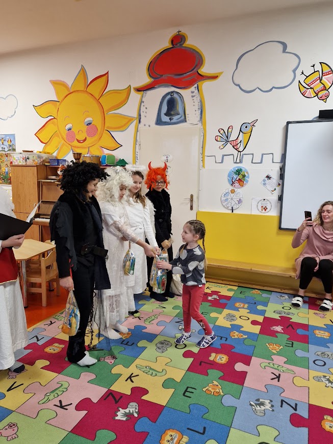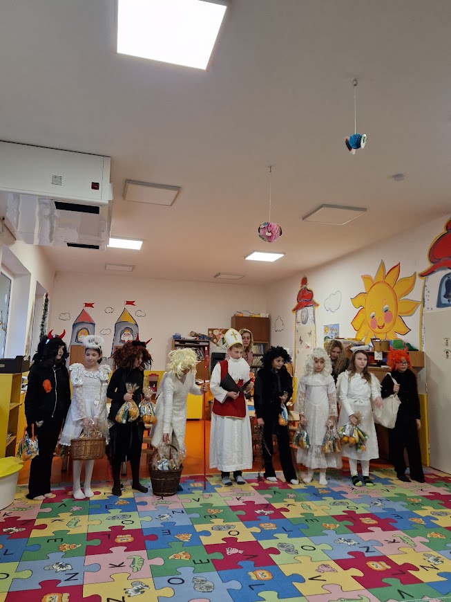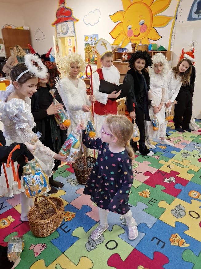 V pátek 5.12. navštívil naši školku svatý Mikuláš se svojí družinou a obdaroval všechny děti drobným dárečkem.