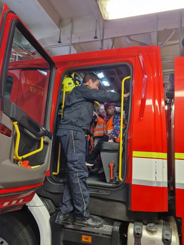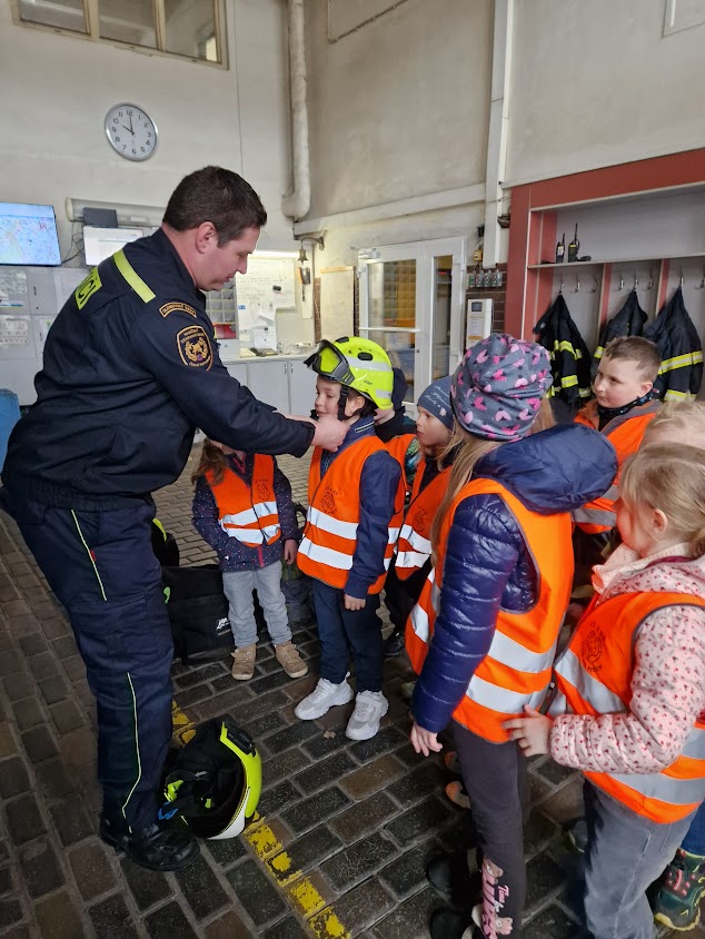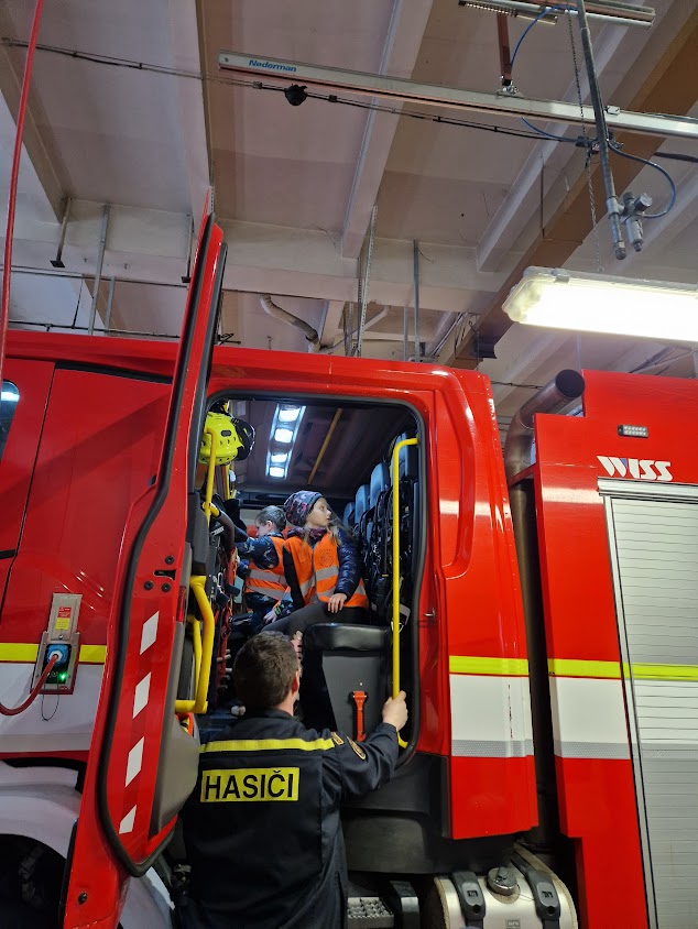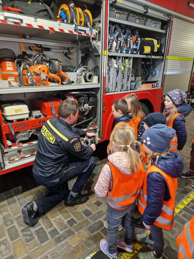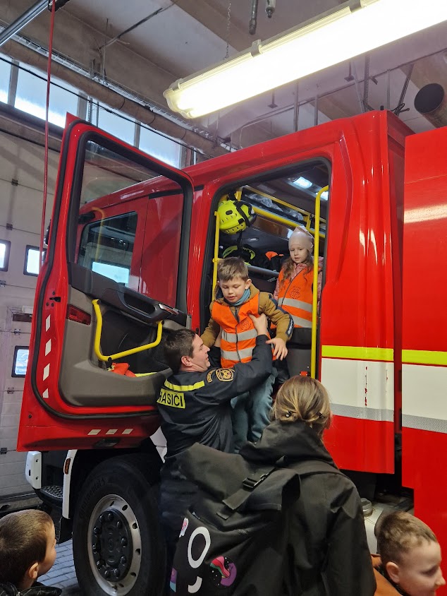 Po roce jsme se s dětmi opět vydali k hasičům do Prostějova. Děti si mohly prohlédnout služebnu i vybavení v garážích.