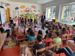 V pátek 5.4. k nám zavítal pan Vojkůvka, který si pro děti z MŠ a žáky 1., 2. a 3. ročníku připravil hudebně pohybové hrátky za živého hudebního doprovodu. Všichni se velmi aktivně zapojili a dobře se bavili.