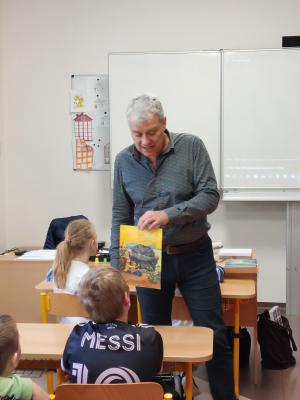 Dnes 15.4. k nám zavítal spisovatel Josef Beneš, autor dětských knih, který nám nejen představil svoji tvorbu, ale také nám vysvětlil, jakou cestu musí knížka od svého napsání urazit, než doputuje do knihkupectví.