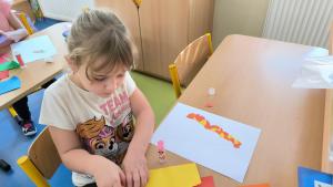 V tomto týdnu jsme s prvňáčky v pracovních činnostech vytvářeli pomocí trhané techniky počáteční písmeno svého jména. Ve výtvarné výchově jsme si vyzkoušeli tajemné malování pomocí sody a kurkumy. V obou případech děti práce moc bavila a výtvory se nám pěkně vydařily.