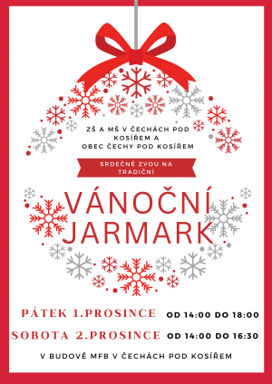 Zveme Vás na Vánoční jarmark, který se bude konat 1. a 2. prosince v budově MFB v Čechách pod Kosířem.