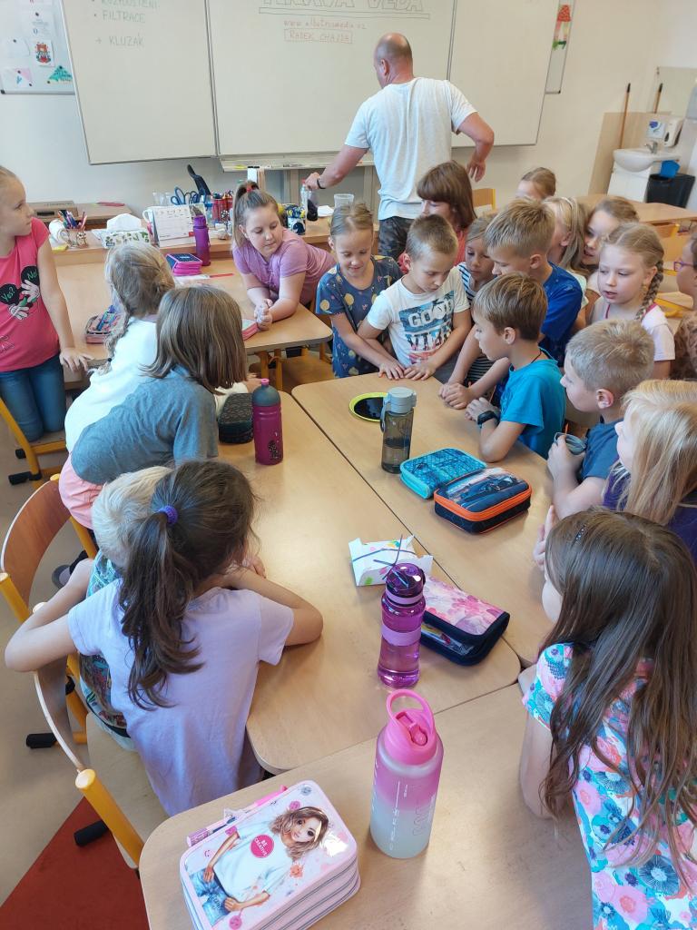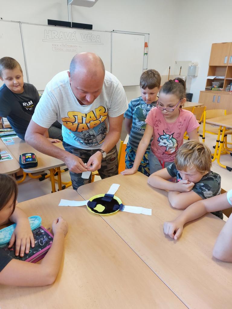 Dnes si pro děti připravil zajímavé pokusy fyzik Radek Chajda. Žáky to moc bavilo.
