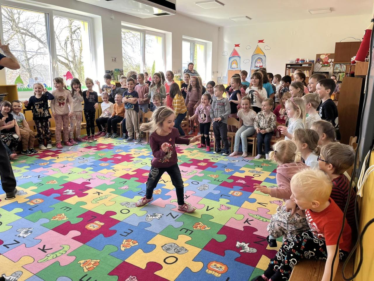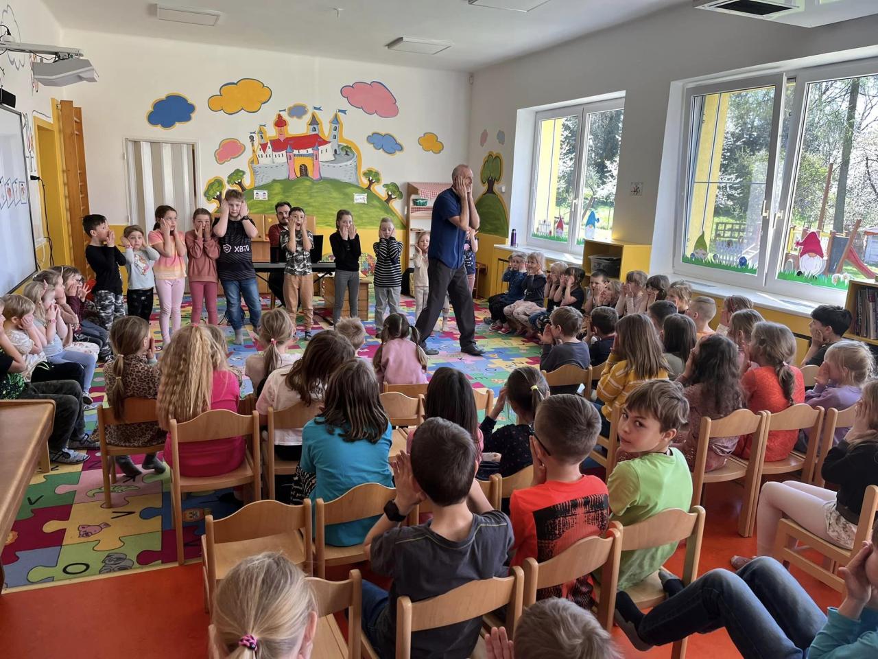 V pátek 5.4. k nám zavítal pan Vojkůvka, který si pro děti z MŠ a žáky 1., 2. a 3. ročníku připravil hudebně pohybové hrátky za živého hudebního doprovodu. Všichni se velmi aktivně zapojili a dobře se bavili.