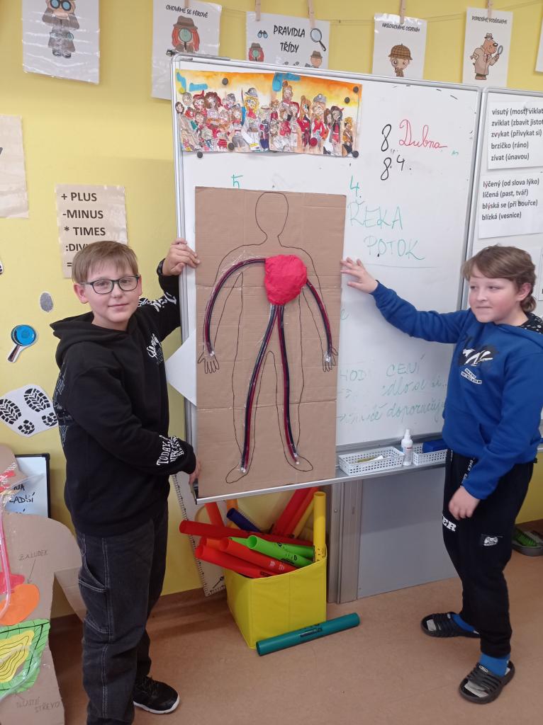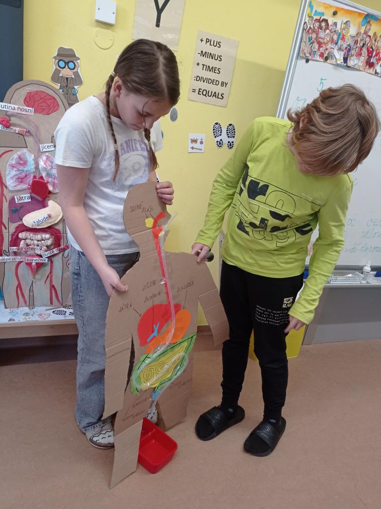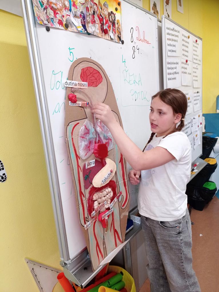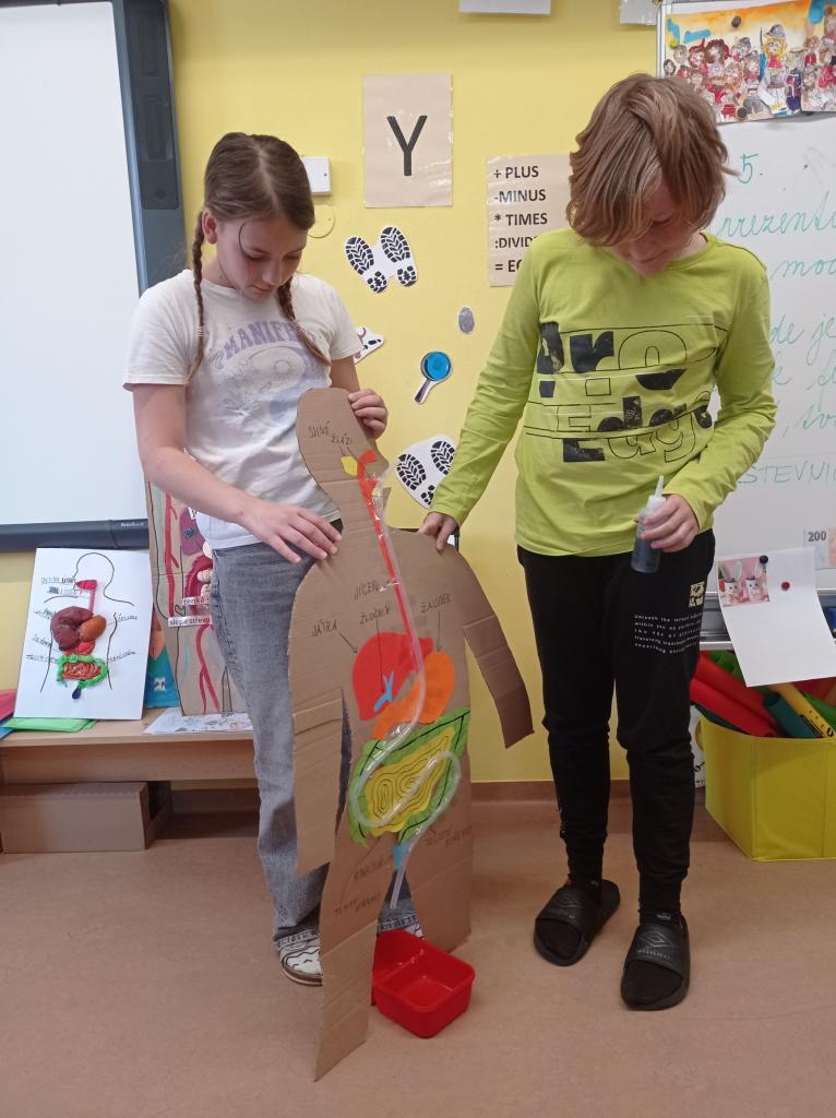 V rámci učiva o lidském těle si žáci 5. ročníku vyzkoušeli netradiční projektovou výuku. Jejich úkolem bylo vytvořit model jedné z orgánových soustav – a to způsobem, který si sami zvolili. Většina žáků pracovala samostatně, vznikla ale i jedna dvojice, která spojila síly a vytvořila model společně.