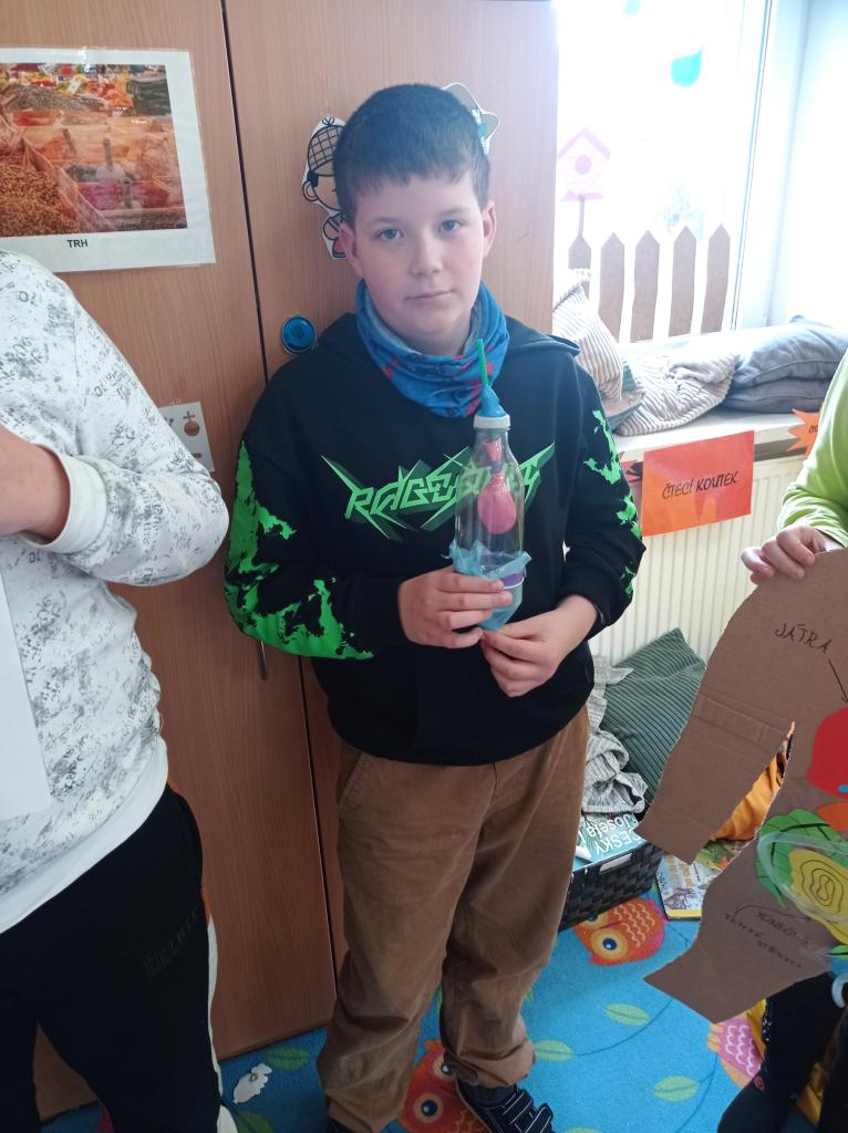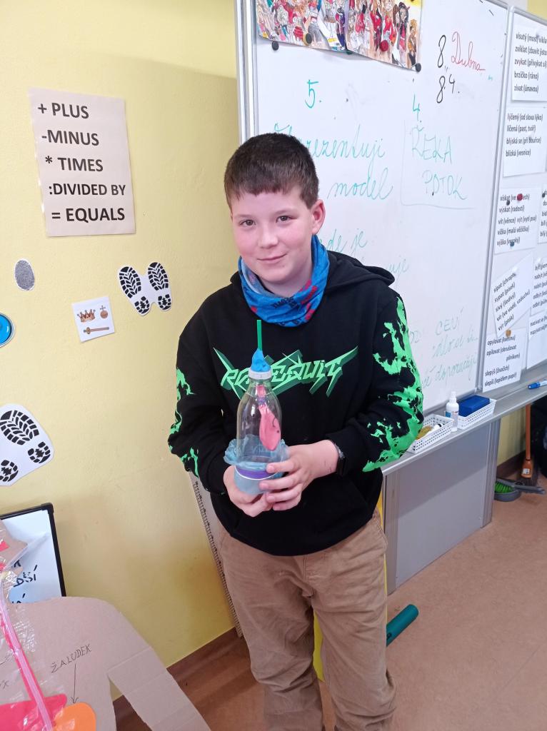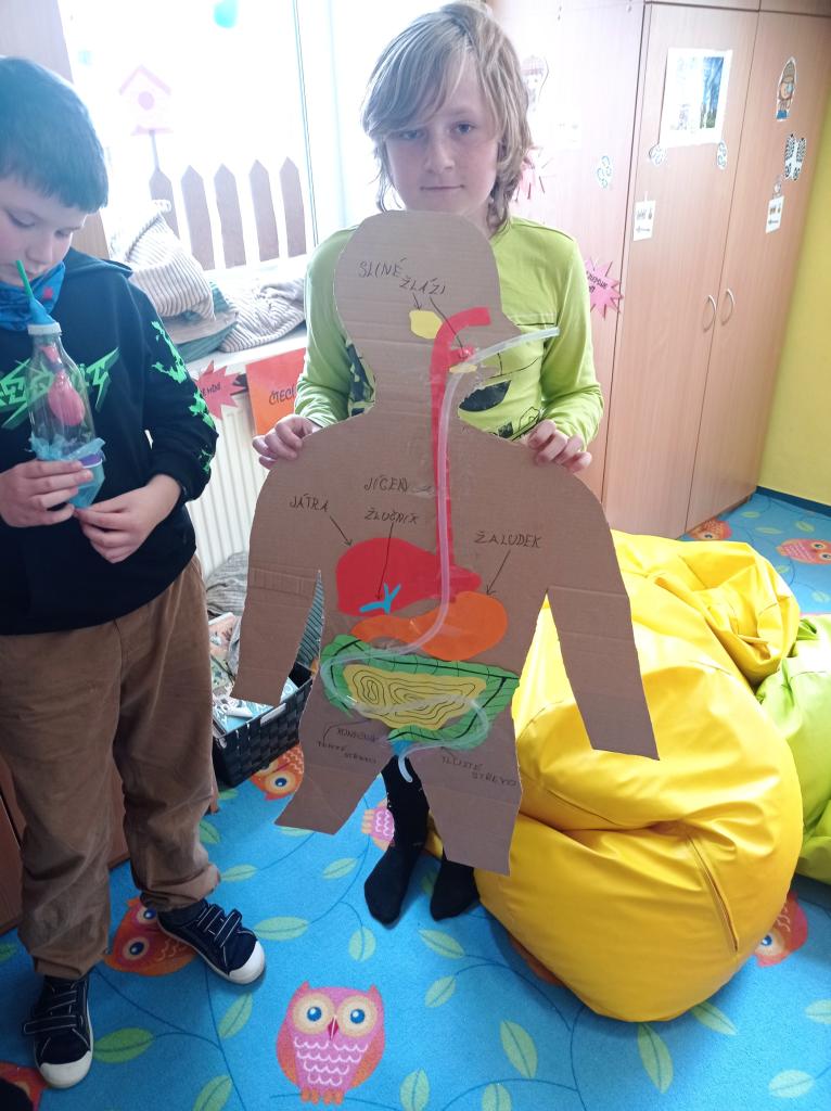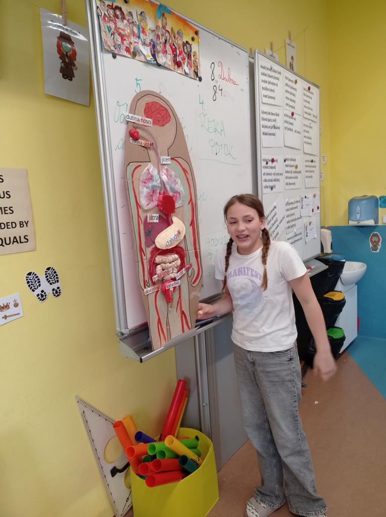 V rámci učiva o lidském těle si žáci 5. ročníku vyzkoušeli netradiční projektovou výuku. Jejich úkolem bylo vytvořit model jedné z orgánových soustav – a to způsobem, který si sami zvolili. Většina žáků pracovala samostatně, vznikla ale i jedna dvojice, která spojila síly a vytvořila model společně.