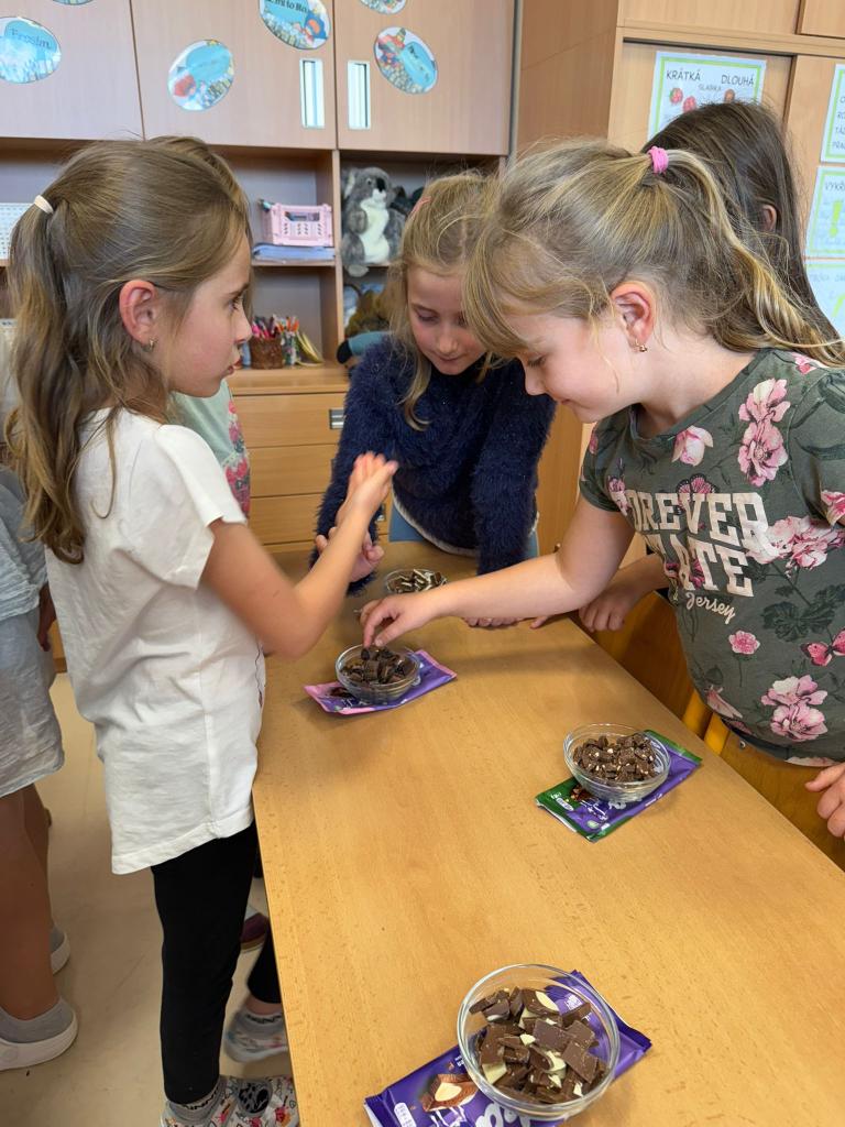 Ve školní družině jsme si připomněli Mezinárodní den čokolády. Povídali jsme si o tom, z čeho čokoláda vzniká, jak se vyrábí a objevili jsme i mnoho zajímavostí o této sladké pochoutce. Největší radost nám ale udělalo čokoládové fondue, při kterém jsme si do rozpuštěné čokolády namáčeli kousky ovoce