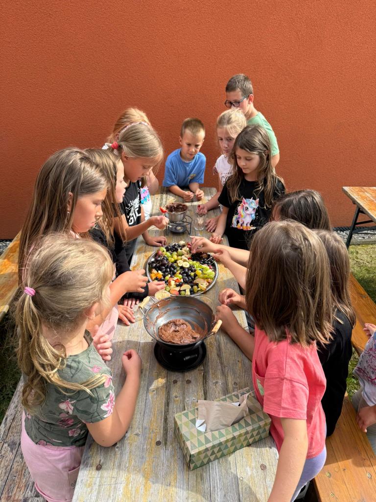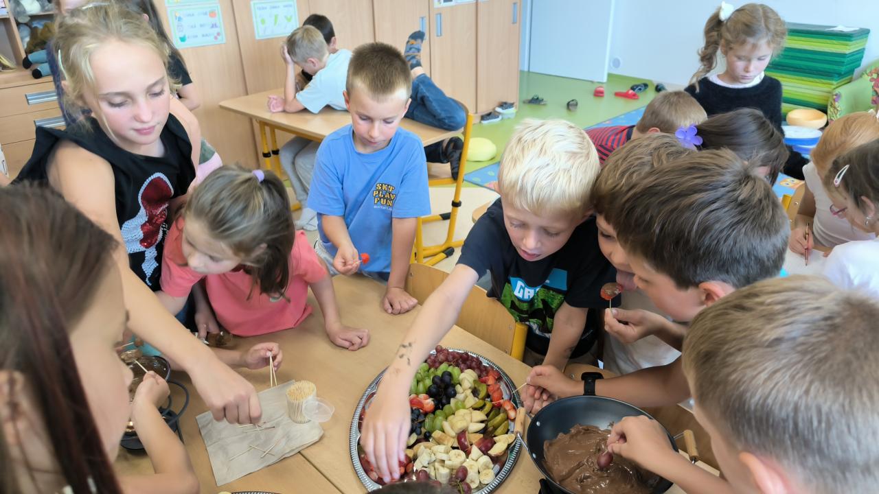Ve školní družině jsme si připomněli Mezinárodní den čokolády. Povídali jsme si o tom, z čeho čokoláda vzniká, jak se vyrábí a objevili jsme i mnoho zajímavostí o této sladké pochoutce. Největší radost nám ale udělalo čokoládové fondue, při kterém jsme si do rozpuštěné čokolády namáčeli kousky ovoce. Sladká tečka, která všem vykouzlila úsměv na tváři! 🍫🍓