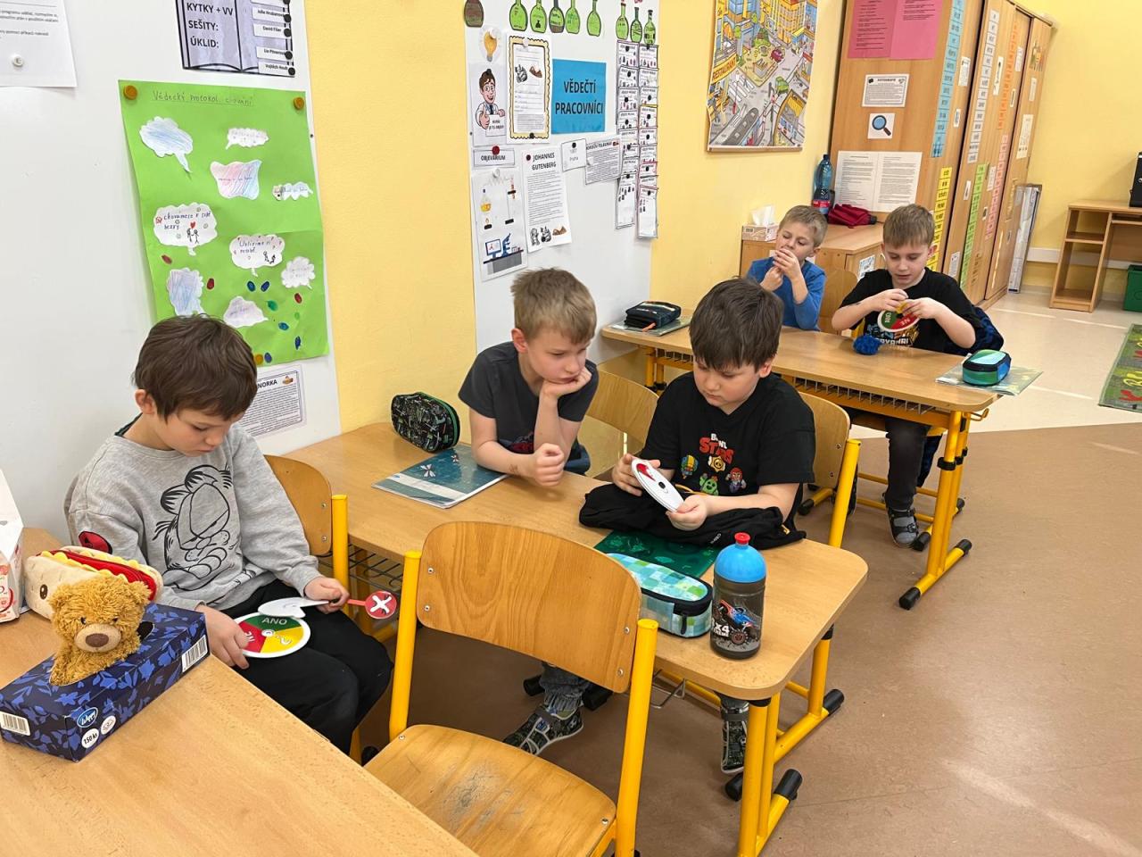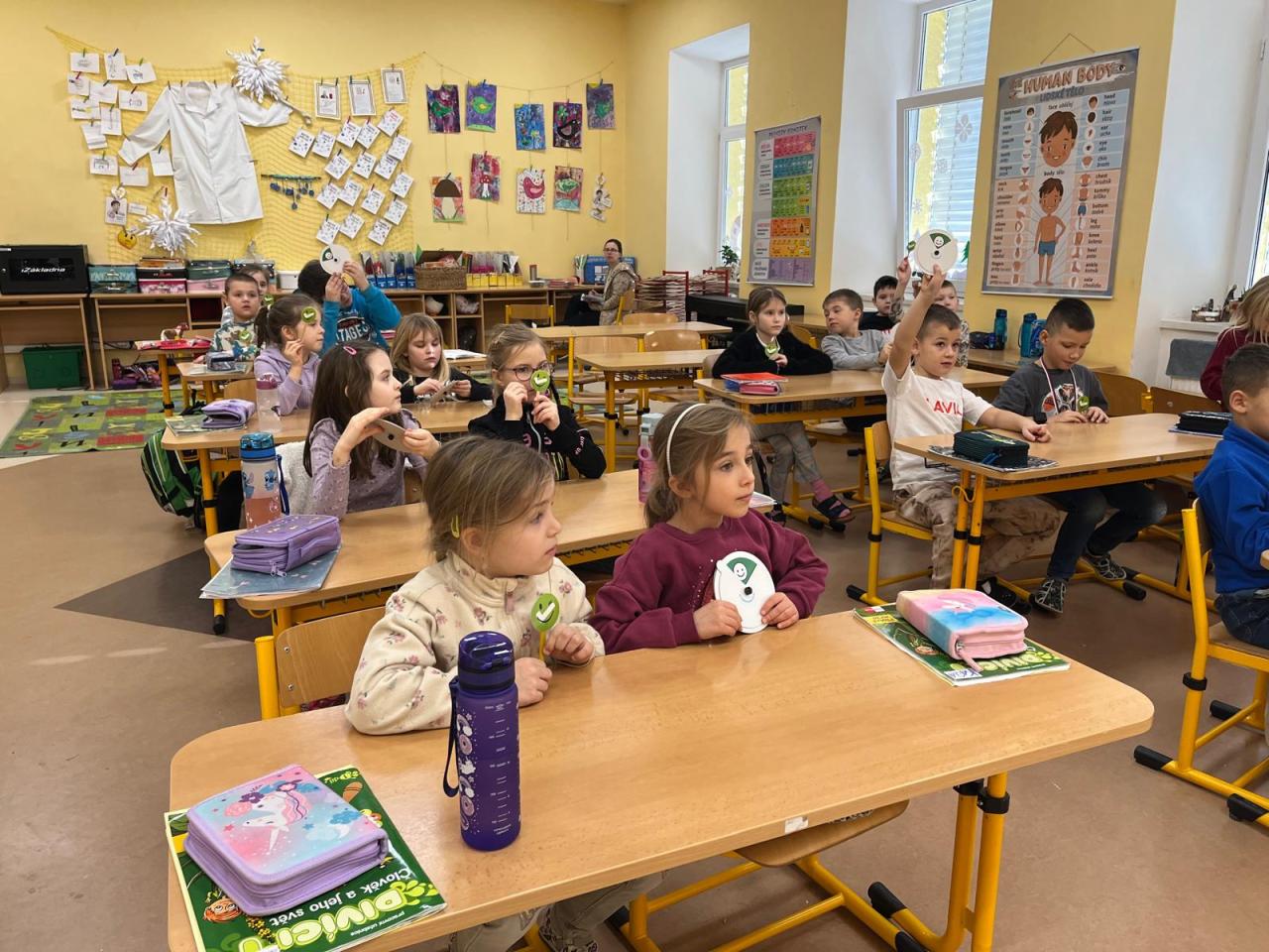 V průběhu vyučovací hodiny zaměřené na prvouku se žáci aktivně zapojili do poznávání různých druhů ptáků. Hravým způsobem se pohybovali kolem krmítka a hledali správná jména ptáčků, která si zapisovali do svých listů. Také se tak naučily, čím ptáky správně krmit a jaké druhy se u nás vyskytují. V hodině si vyzkoušeli nové hlasovací zařízení pomocí kolečka.