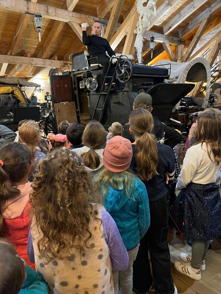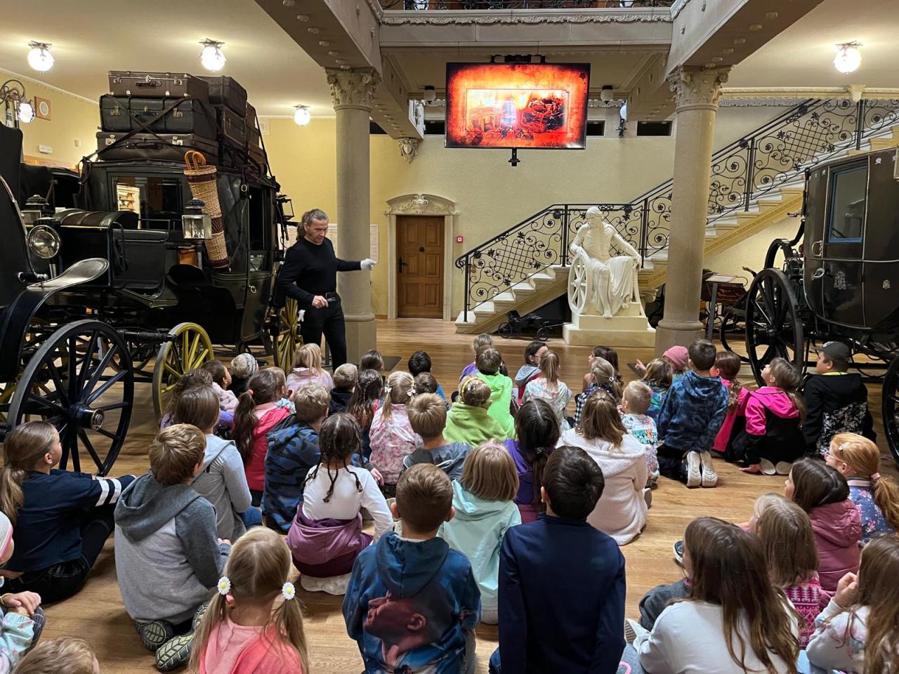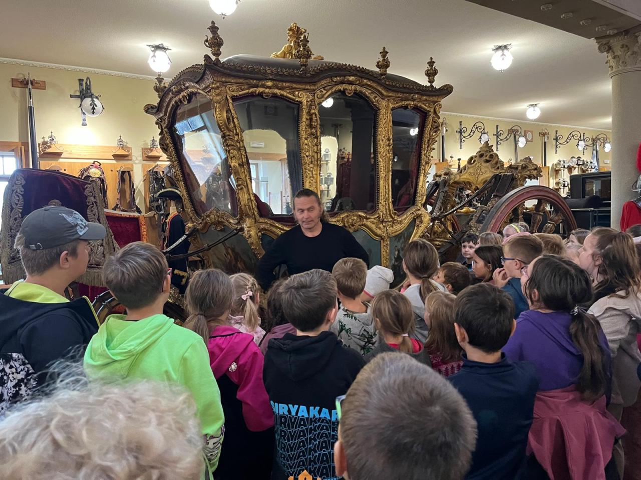 V muzeu kočárů, které patří k největším v České republice, měly děti možnost vidět unikátní sbírku historických kočárů, které dříve sloužily šlechtě i běžným lidem. Průvodce pan Obr dětem zajímavým způsobem přiblížili, jak se kočáry vyráběly, jaké techniky se používaly při jejich restaurování, a jaký význam měly pro dopravu v minulosti. Některé exponáty byly opravdu impozantní, a děti si mohly prohlédnout i kočáry, které byly zapůjčeny pro natáčení známých historických filmů.