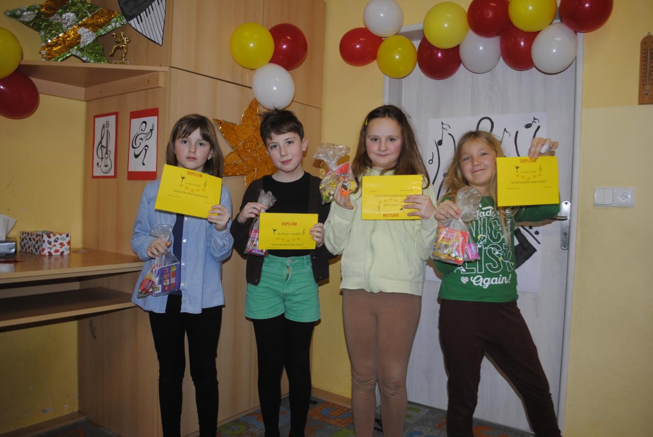 Ve čtvrtek 2. února jsme ve školní družině uspořádali talentovou soutěž Školní družina hledá talent, která se těšila bohaté účasti žáků. Žáci soutěžili v různých kategoriích dle vlastního výběru. Převedli se ve zpěvu, hře na flétnu, klavír, kytaru i na ukulele. Viděli jsme také taneční vystoupení, gymnastickou sestavu i muzikálové číslo. Žáci se na soutěž pečlivě připravili a celé odpoledne jsme se moc dobře bavili. Talentů jsme ve školní družině našli mnnoho, proto si pěknou odměnu zasloužili úplně všichni soutěžící. Budeme se těšit na další ročník.