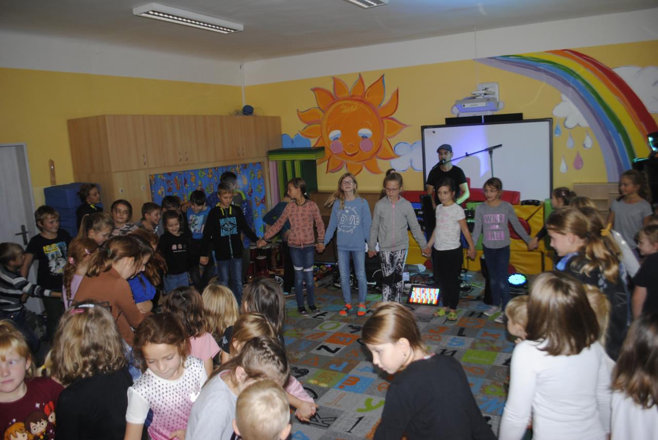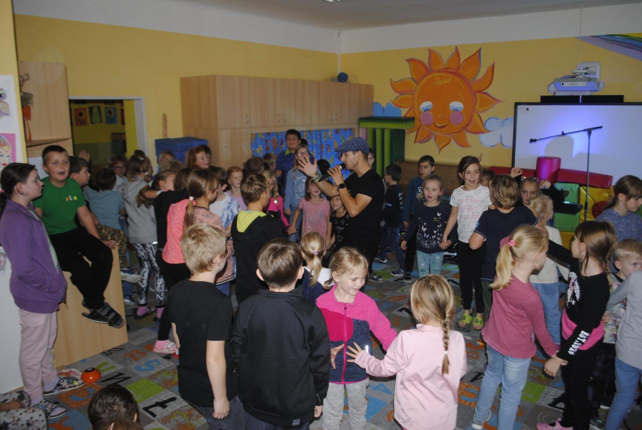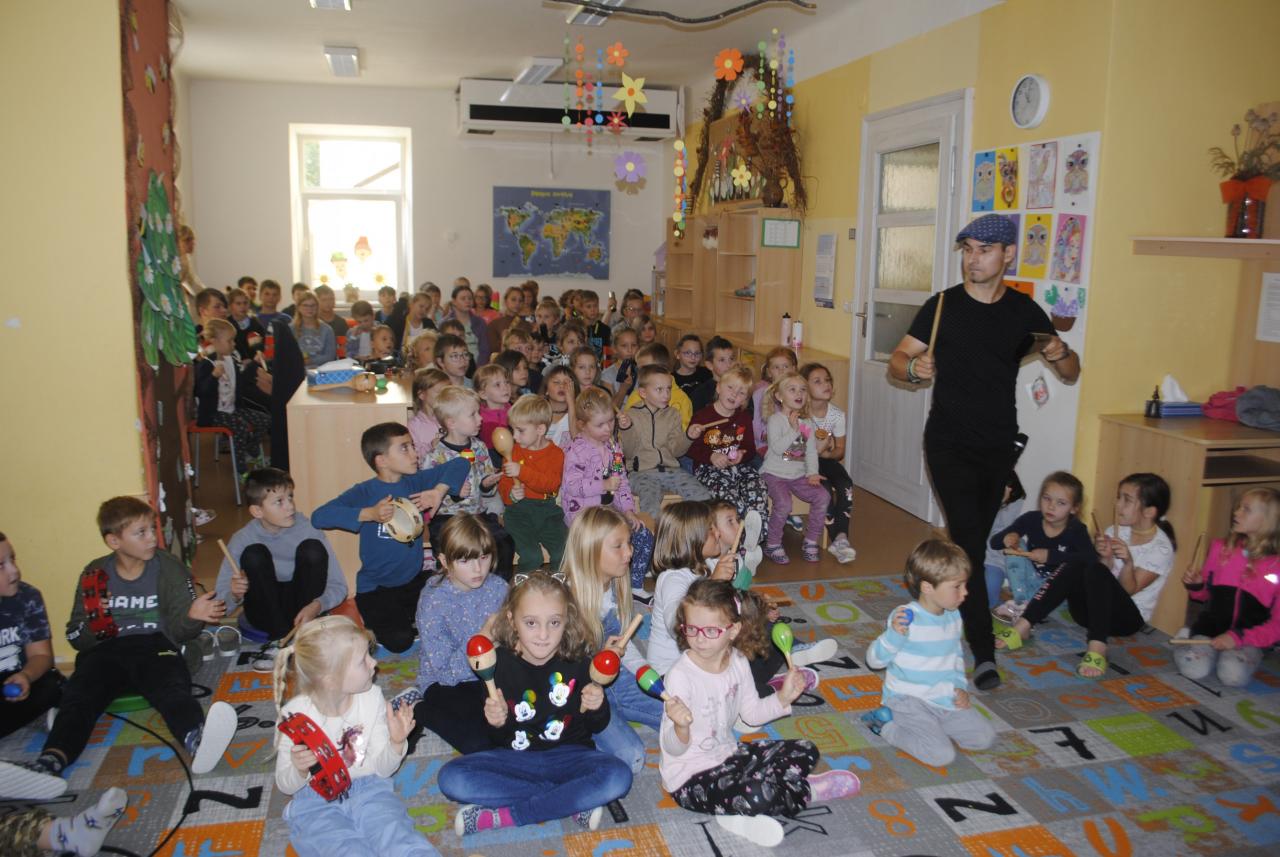 Ve čtvrtek 6. října nás navštívil hudebník pan Petr Toman se svou Rytmickou show. Děti byly nadšené z programu, při kterém si mohly zazpívat, zatancovat i předvádět své hudební dovednosti. Tato hudební akce se všem moc líbila.