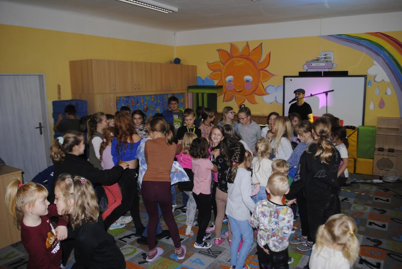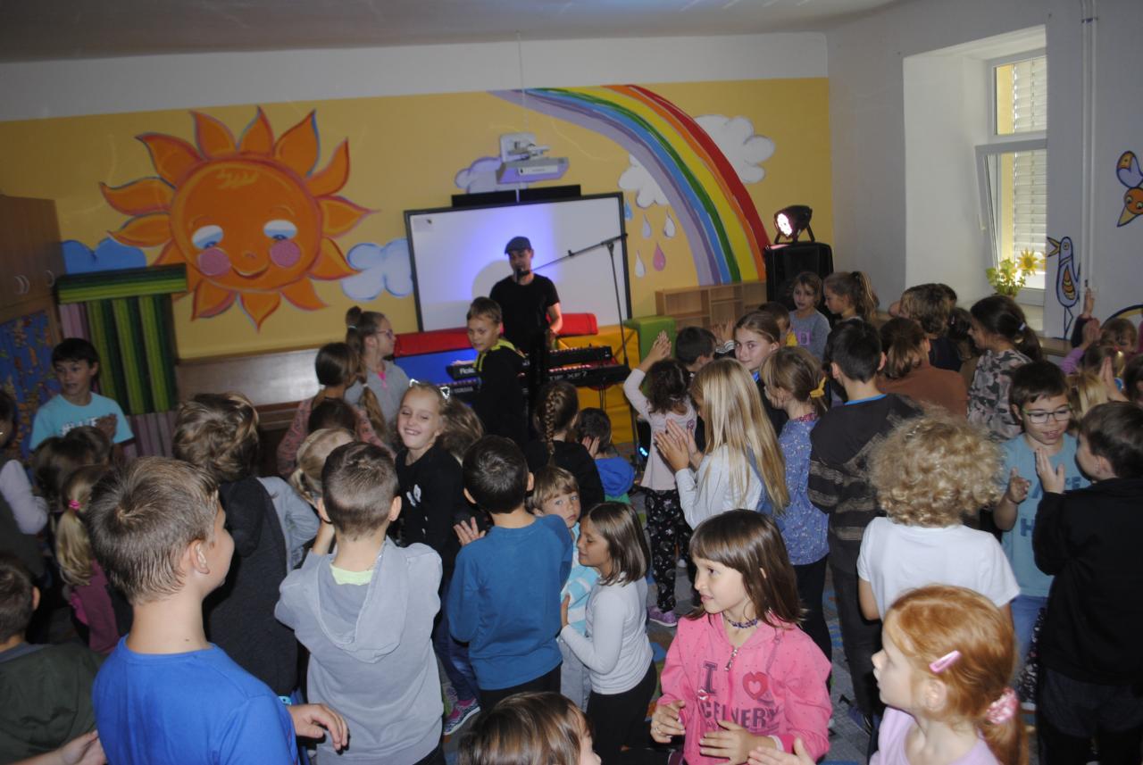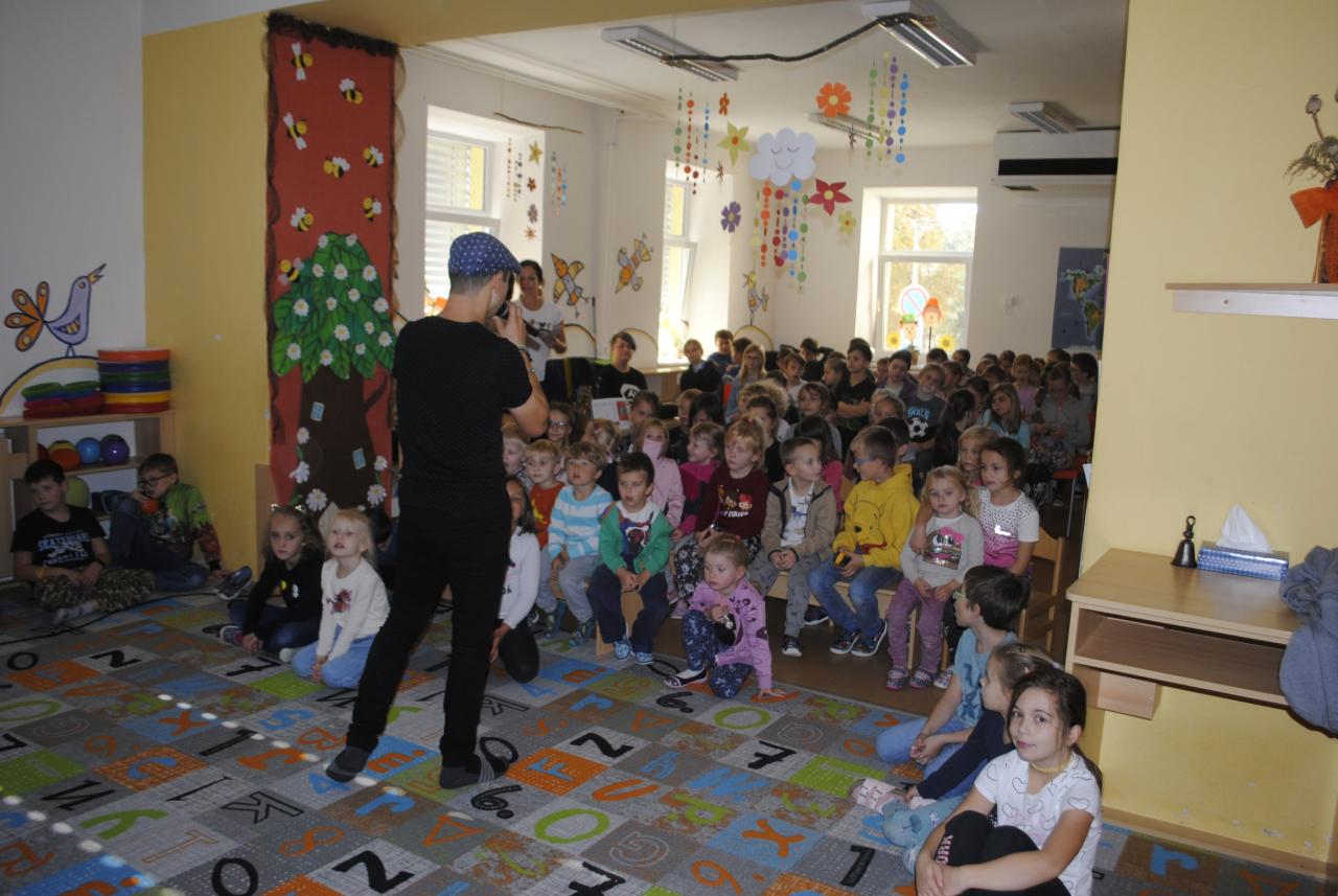 Ve čtvrtek 6. října nás navštívil hudebník pan Petr Toman se svou Rytmickou show. Děti byly nadšené z programu, při kterém si mohly zazpívat, zatancovat i předvádět své hudební dovednosti. Tato hudební akce se všem moc líbila.
