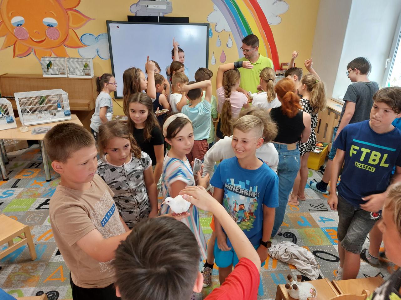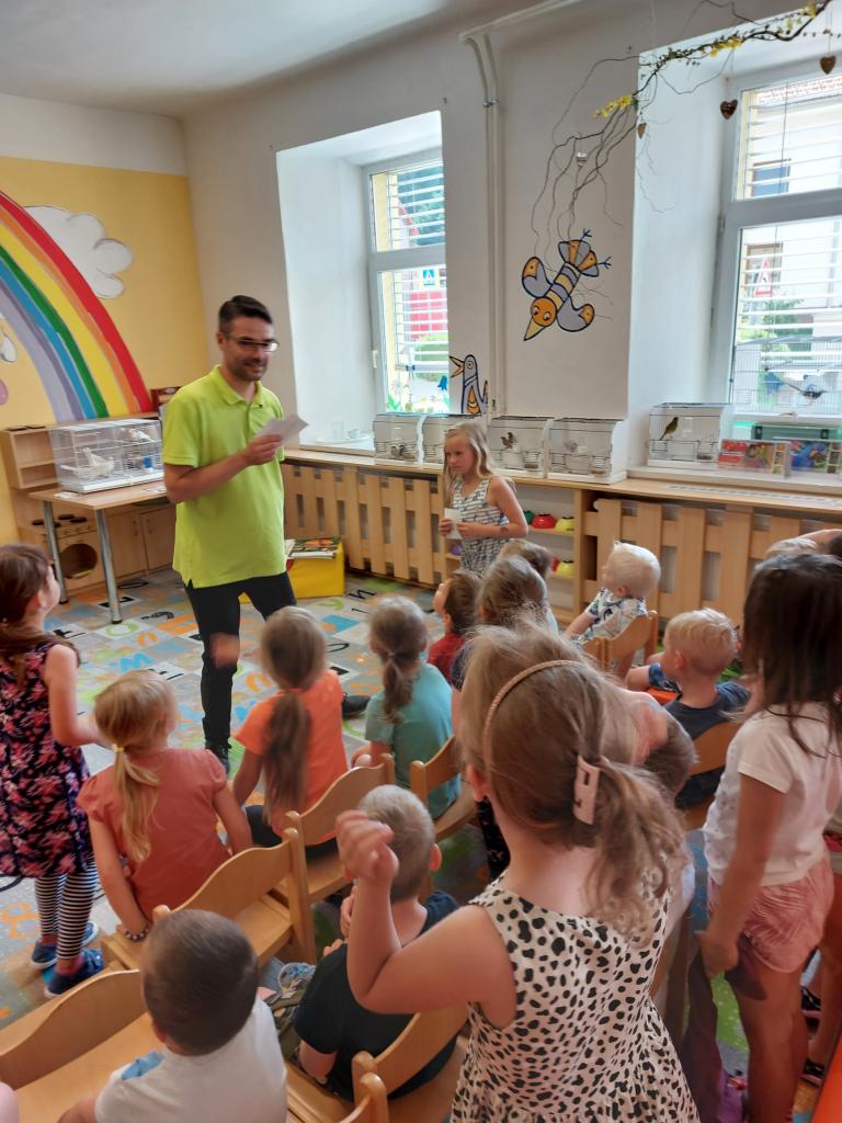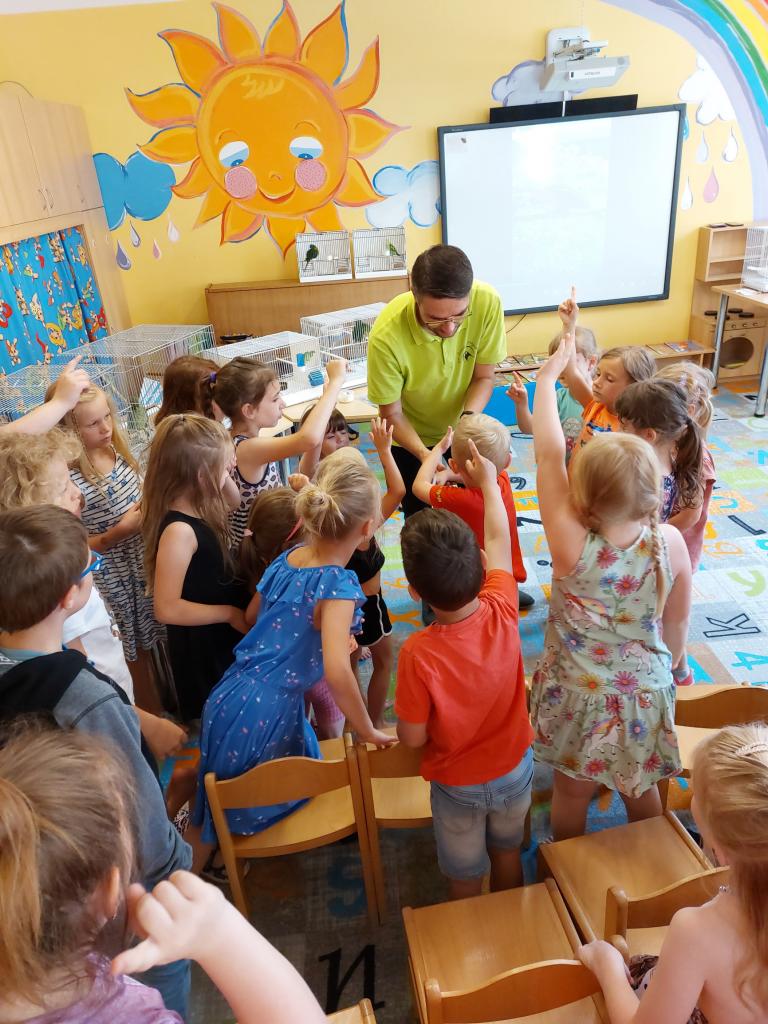 Dne 20.6. k nám přijel pan Jaromír Vachutka s ukázkou drobného ptactva. Měl pro děti nachystanou zajímavou přednášku. Žáci měli možnost si některé ptáčky pohladit