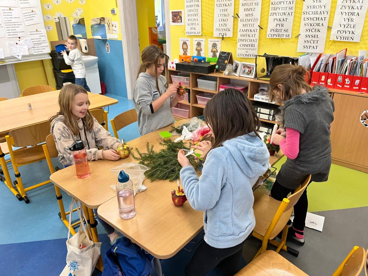 V naší škole zavládla vánoční atmosféra díky tradičním vánočním dílnám, kterých se zúčastnili všichni naši žáci. Společně vyráběli krásné jablíčkové svícny, ozdoby na stromeček a při tom si povídali o vánočních zvycích a tradicích.